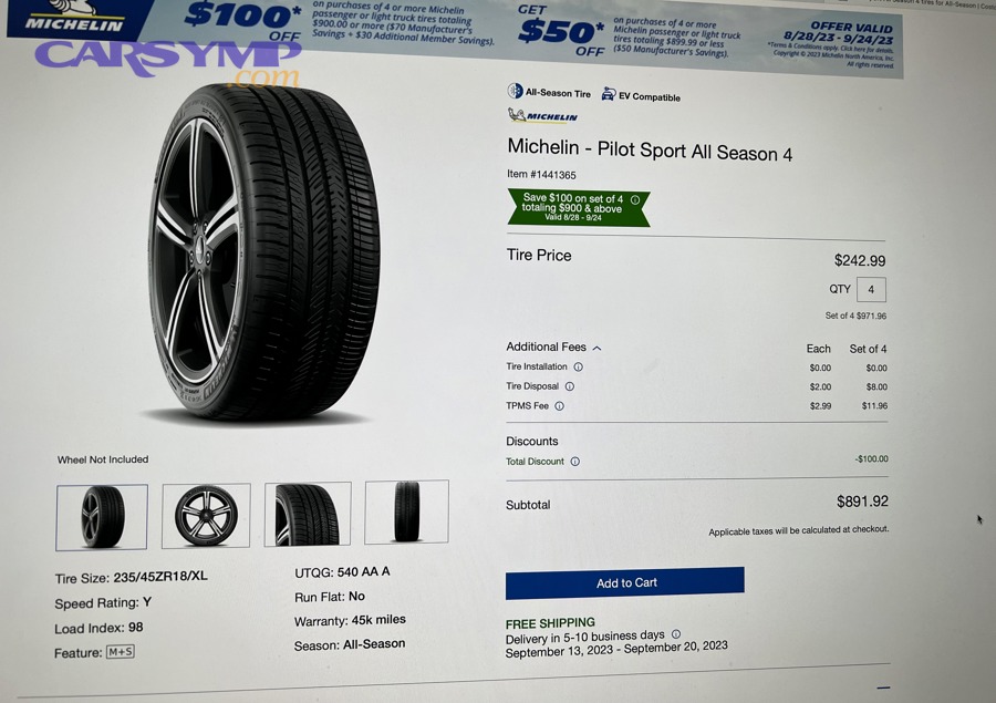 Choosing where to buy and install your tires matters just as much as which tires you select. A set of tires purchased at a wholesale club like Costco may include free mounting, balancing, rotation, and a road hazard warranty in a single bundled price, while a dealership may charge separately for each of those services and still quote you a higher unit price per tire. The retailer decision is often where the biggest savings are found.